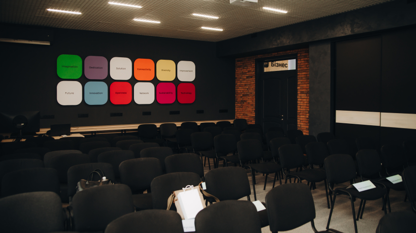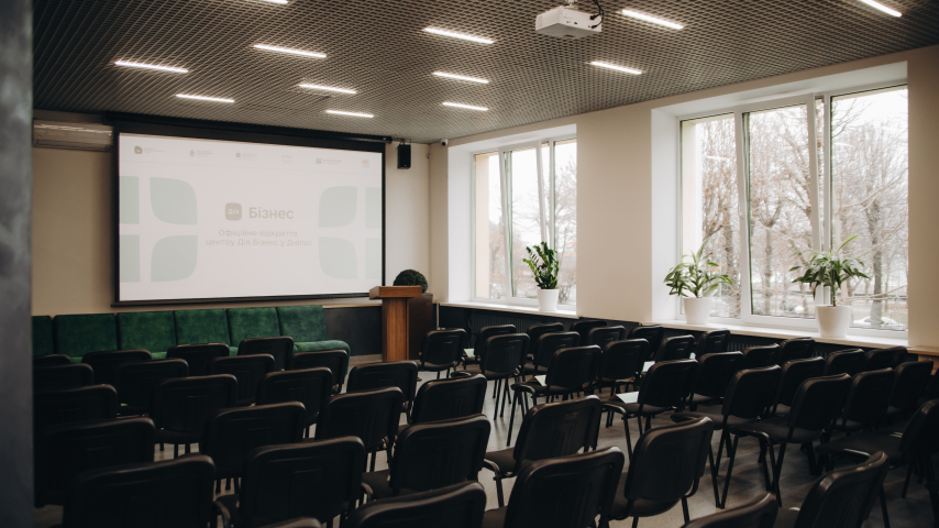 Конференц-зала центру підтримки підприємців Дія.Бізнес у Дніпрі — це сучасний та функціональний простір у центрі міста, який ідеально підходить для проведення лекцій, семінарів, тренінгів і корпоративних зустрічей.